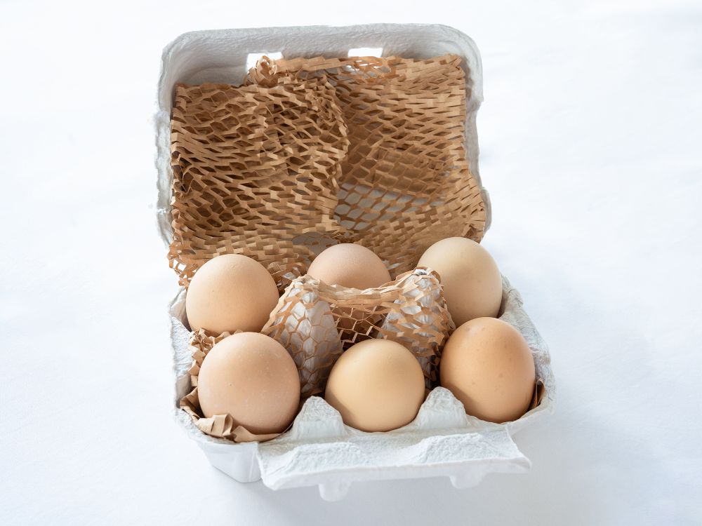卵は1個約40gと小ぶりながら、黄身はぷっくり盛り上がり、濃厚で深い味わいが魅力です。